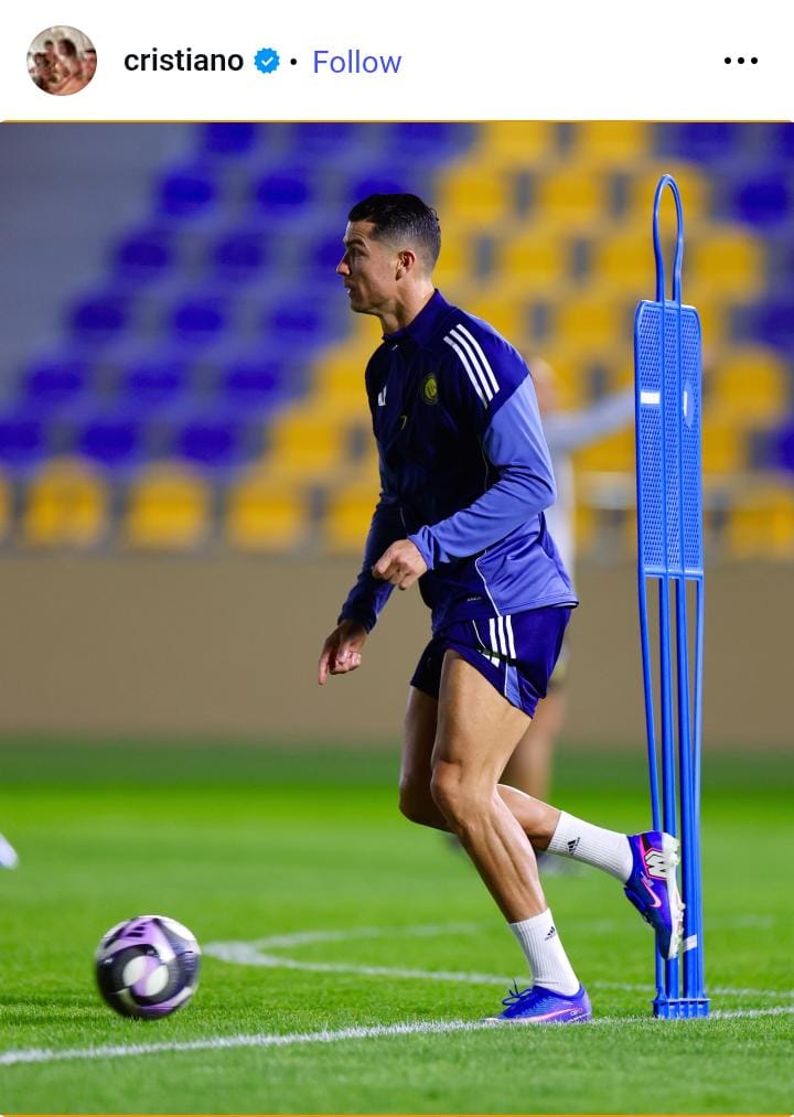 Cristiano Ronaldo has returned to training with Al Nassr, putting to rest rumors of his potential exit from the Saudi club. The 40-year-old Portuguese star was absent from Al Nassr’s recent match against Al Riyadh, sparking speculation about his future. However, Ronaldo has now posted a photo of himself in training, accompanied by Al Nassr’s colors, indicating he’s committed to the club.